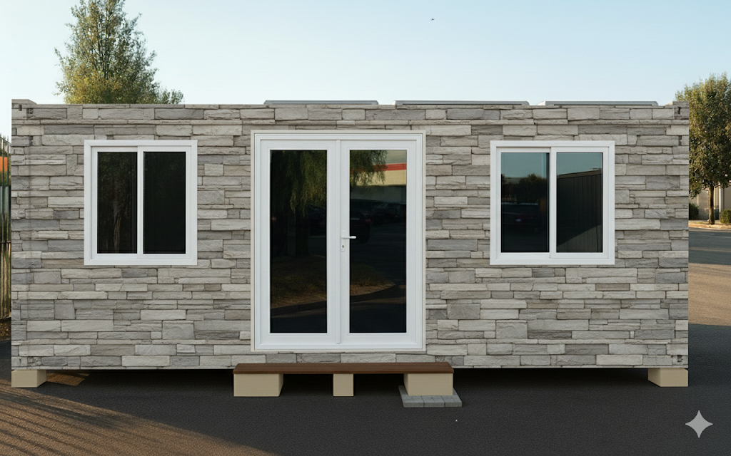 Buyers can add fireproof siding in all possible colors – Or Faux Wall Veneer Sticker – there are swatch books for selection